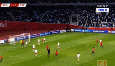 第43分钟,基泰什维利外围中路斜传,克瓦拉茨赫利亚插上带球杀入禁区左脚低射破门!西班牙0-1落后。