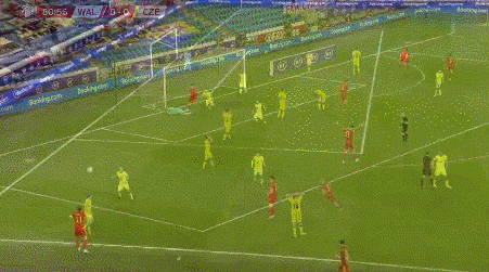 第82分钟,贝尔掷出左侧界外球,队友将球回敲给贝尔,面对捷克后卫的防守,贝尔突然启动用速度摆脱防守,随即送出精准传中球,禁区后点的詹姆斯头球破门,帮助威尔士1-0领先!现年23岁的詹姆斯效力于曼联,他的身高只有170厘米,但却高高跳起力压对方后卫打进了这个精彩头球,这也是其成年队生涯中首次头球破门!最终依靠这个进球,威尔士主场1-0战胜捷克,取得了本届世预赛的首场胜利。