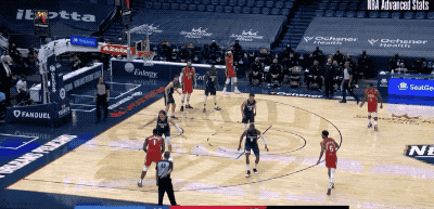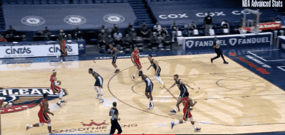 假设用繁琐地篮球语言来解释这一问题,你可以说,锡安是持球前锋,英格拉姆也是持球前锋,那么其中一个必然要做出妥协;又或者是,英格拉姆需要突破空间,锡安更需要,而篮底又有亚当斯杵在那里……甚至还可以扯到空间的利用效率上,最好的投手是鲍尔(7.8次三分出手,命中率38.5%)的球队,谈何充分利用空间呢?
