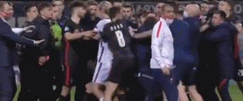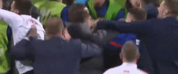 在主裁吹响终场哨后,克罗地亚球员们围坐一团又唱又跳。琼斯受到了克罗地亚球员们的嘲讽,冲过去要打架。英格兰教练好不容易才拉开了琼斯,这名利物浦中场在比赛结束后吃到了第二张黄牌,最终染红。