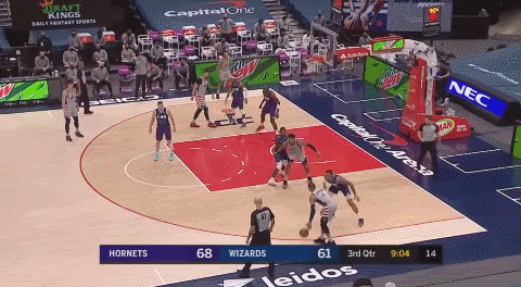 如今,八村塁已经在NBA站稳了脚跟,进入联盟两年,他一直在持续进化。他是个很聪明、很会调整自己打法的球员。他现在除了每场有1.8次的低位背打,大部分进攻都来自于转换进攻和定点投射,上个赛季他自己持球得分的比例是33.5%,本赛季降到了23.9%,下降了将近10%,更多地出现在弱侧充当一个接应点,在威少和比尔身边当吃饼侠,这样一来,他的效率也收获了一定程度的提升。