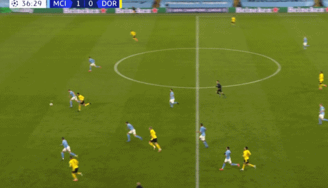 曼城门将埃德森在秀脚法时,出现了重大失误。埃德森停球后准备大脚解围,但巴西人把球挑得过高,贝林厄姆抢先一脚将球捅走。埃德森此时才抡起左脚踢了过来,他一脚踢在了贝林厄姆的鞋底上。埃德森倒地呼痛,贝林厄姆则把球送入了空门之中。