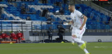 第13分钟,巴斯克斯右路传中,本泽马禁区内脚后跟射门得分,皇马1-0!
