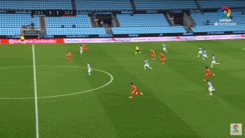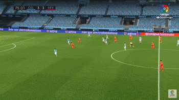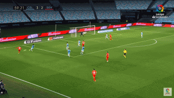 43分钟时,塞尔塔再次取得领先。丹尼斯-苏亚雷斯中路直传,门德斯领球进入禁区后单刀挑射破门。上半场结束,塞尔塔3-2领先。