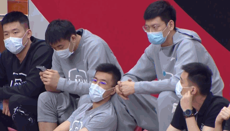 转播镜头给到郭艾伦,大侄子靠在后排朱荣振的腿上观战,表情严肃,,似乎若有所思。