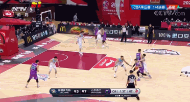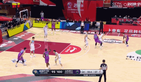 最后还剩2分钟时,山东队97-95只领先新疆队2分。还剩1分56秒,高诗岩外线控球,时间所剩无几,他运到左翼选择干拔3分自信出手,命中关键球!