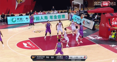 CBA半决赛G1,广东迎战山东。第二节1分21秒,焦海龙在底线救球时不慎打到赵睿的面部,后者倒地捂脸。这一下打得赵睿着实很疼,在地上滚了两圈才起身。