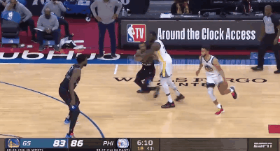 时针先调回到月初,当时的勇士在近8场比赛中输掉了7场,勇士的创新分析主管Pabail Sidhu向科尔展示了一组数据,说当怀斯曼和库里打挡拆时,怀斯曼的效率最高。