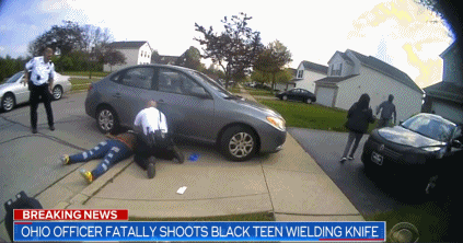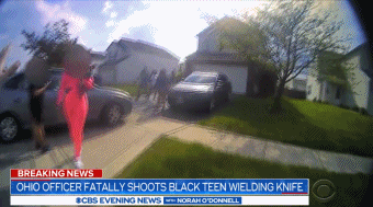 根据在场警察的执法录像,死者在中枪之前正持刀攻击她面前的另一位女孩。警察警告无效过直接开枪,而且开了四枪。