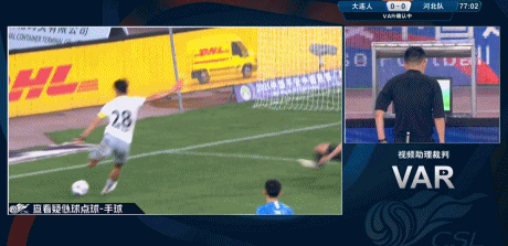 比赛第90分钟,崔明安禁区内胸部停球后被河北队队长张呈栋解围了。慢镜显示,张呈栋有明显的手球行为,大连人队员赶忙投诉,但王竞之后并没有做出表示。