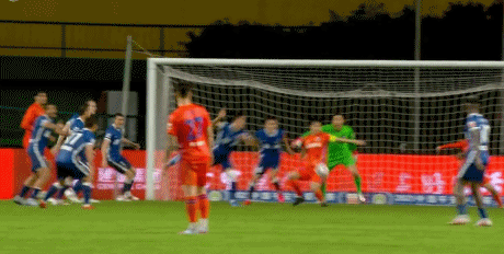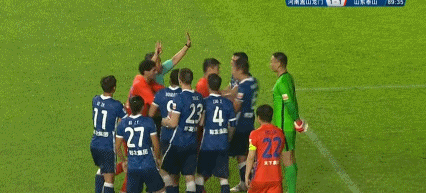 第90分钟,山东队获得前场中路任意球,孙准浩主罚任意球到禁区里,费莱尼头球摆渡,跟进球员左脚凌空打门打在了王上源身体上。山东队球员索要点球,双方球员围在一起,王上源和郭田雨发生了激烈的言语冲突,而且有手上的动作。好在,两人很快被队友拉开,主裁王哲也对两人进行了警告。