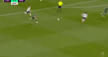 贝尔随后的两个进球,都是速度快角度刁的射门,打了门将的死角让门将毫无办法:第61分钟,热刺反击,孙兴慜传球,贝尔插上单刀,贝尔16码处左脚射门,球飞入右上角;第69分钟,奥利耶传球,贝尔大禁区线前左脚抽射,球飞入右下角。