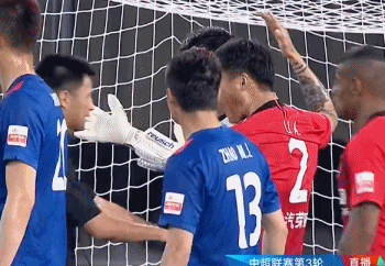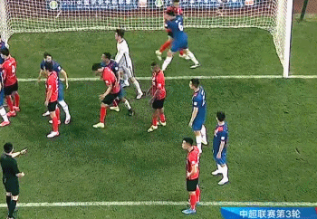 第33分钟,海港获得角球机会,此时双方球员在禁区里发生了推搡,艾迪禁区里有个抱摔李昂的动作,此时主裁哨响示意双方球员注意手上动作。