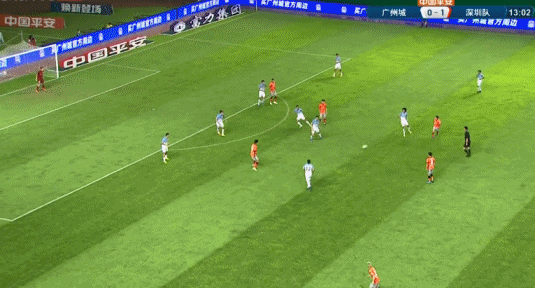 第8分钟,李源一中路短传,金特罗斜传转移至禁区至左侧,郜林在唐淼身后鱼跃冲顶将球顶进远角,深圳1-0领先!