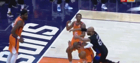 吉布森领到一级恶意犯规,而太阳接下来也没有给尼克斯任何机会,他们让尼克斯在第四节总共只得到17分。保罗全场拿下17分11助攻6篮板,当他在场太阳净胜对手21分。