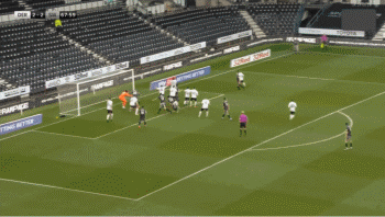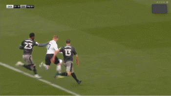 在第78分钟时,德比郡利用一记点球将比分追为3-3。敦克列禁区内背后放倒尤斯魏亚克,瓦格霍恩左脚将点球推入球门左上角。