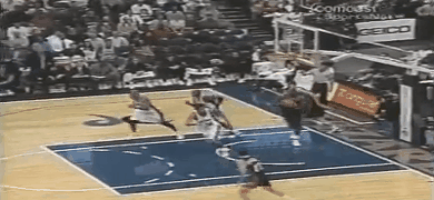 乔丹和爵士,任谁都知道他们之间的姻缘。两次总决赛被乔丹送出了数个神迹镜头,穿奇才球衣前,乔丹的最后一场比赛便是在盐湖城的Last Shot。在那之后,爵士一直是每况愈下:99年半决赛出局好歹是西部第一,00年依旧半决赛出局但输的一塌糊涂,01年干脆首轮都没过变成了年轻牛仔的踏脚石,最可气的是抢五中绝杀他们的那个加尔文-布斯居然是乔丹从奇才交易去小牛的。
