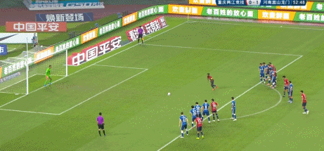 第54分钟,吴龑扑出点球后场开大脚,多拉多弧顶前沿头球摆渡,陈蒲用身体倚住张翔在禁区左侧左脚劲射,陈钊扑了一下,球坠入球门,嵩山龙门2-0领先!