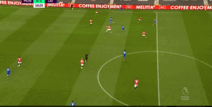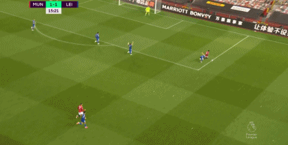 第42分钟,伊赫纳乔直塞,瓦尔迪和图安泽贝拼速度冲入禁区最后是图安泽贝更快。第43分钟,伊赫纳乔传球,蒂勒曼斯远射被挡出。补时第2分钟,蒂勒曼斯主罚25码处任意球射门打在人墙上。上半场结束两队1-1平,上半场虽然有两个进球但两队加起来只有4次射门,曼联更是只有1次。