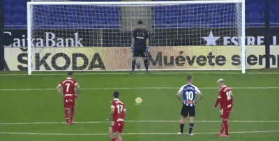 易边再战,西班牙人再遭打击,第50分钟,卡莱罗禁区放倒卡斯特罗,主裁判果断判罚点球。随后卡斯特罗亲自主罚命中,0-2!