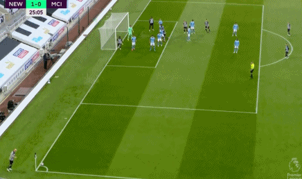 第42分钟,墨菲放倒坎塞洛,曼城获得前场左侧任意球,京多安主罚将球挑传禁区,费兰-托雷斯小禁区犄角处附近蝎子摆尾破门,曼城将比分反超,2-1!终场伤停补时阶段,阿克禁区内铲倒乔林顿,当值主裁查看VAR后判罚点球,随后乔林顿亲自操刀命中,纽卡斯尔扳平比分,2-2!上半场比赛结束,双方2-2战成平局。