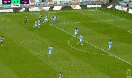 第66分钟,坎塞洛禁区外右脚大力轰门,皮球狠狠击中右侧立柱弹回场内,费兰-托雷斯随后右脚补射破门上演帽子戏法,曼城再度将比分反超,4-3!第77分钟,斯特林回传,京多安大禁区前沿中路右脚怒射打偏。此后,双方均无建树。全场比赛结束,曼城客场4-3逆转纽卡斯尔。