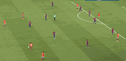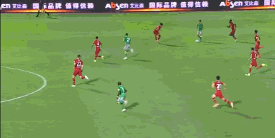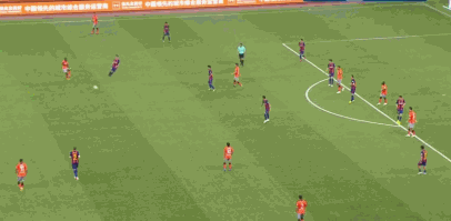 随着比赛的深入,深足后腰的前提以及戴伟浚在前腰位置上的跑动,逐渐将对方的阵型压扁。因此,金特罗的位置会越来越靠近对方的禁区。