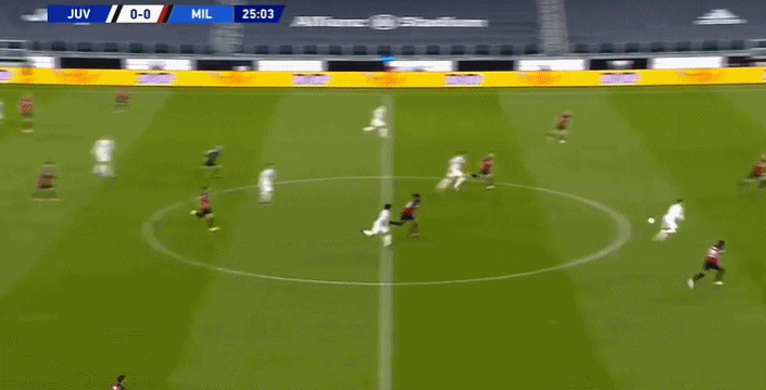 又比如比赛25分钟,米兰在中场推进出现传球失误,尤文打起了反击。多纳鲁马又在数名队友形成2条回追线时勇猛出击,虽然他确实成功把球解围传给了队友,但似乎没有他的话其他人也能做到。