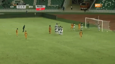 此后长达半个小时的时间里,双方均未能再破门。眼看比赛就要平局收尾,第97分钟,科特迪瓦拿到一个位置不错的前场任意球,罚球位置就在大禁区弧顶处。迪亚洛和队友站在皮球前,队友先是虚晃一枪,迷惑了对手,随后迪亚洛几乎没有助跑,原地摆腿射门,皮球划出美妙的弧线,在球门前下坠,门将根本摸不到球,2-1!绝杀!