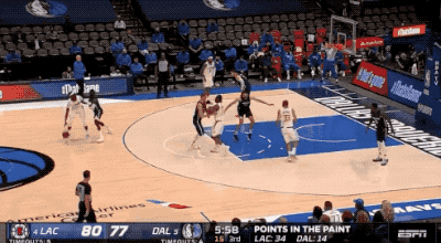 防守端,波尔津吉斯也是任人鱼肉的状态,快船依靠五小阵容的三分威胁把独行侠的防守阵型拉开,然后安排队员轮换空切冲击篮下,这时候打得正是波尔津吉斯把守的篮下。