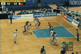 由于没有别的角度镜头,我们无法得知刘炜当时是否被韩国队犯规,但反正裁判的哨子没有响,随后抢断成功的韩国队没有直接在篮下寻找得分机会,而是将球传给外线队员进行三分尝试,这一颇为冒险的举动最终也得到了回报,分差缩小到2分。