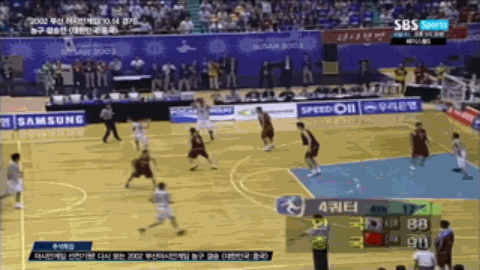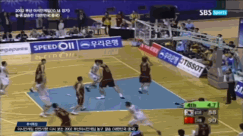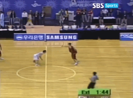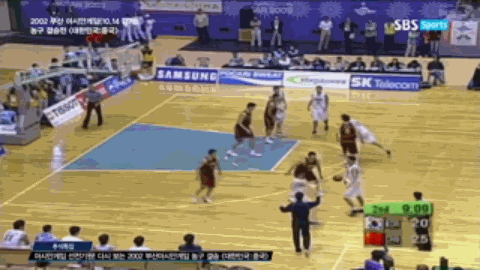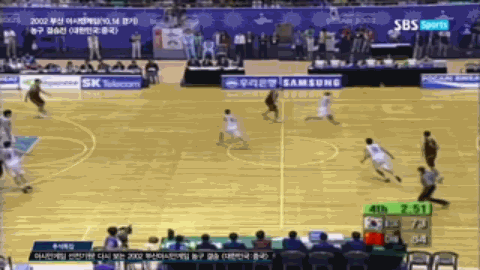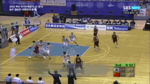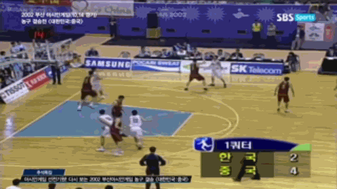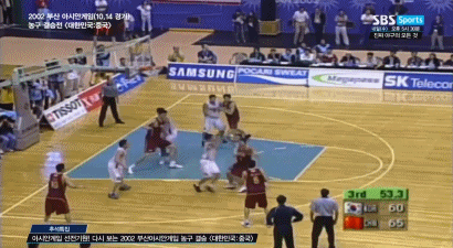 韩国队自然不会轻易放弃,决赛一开始,韩国队就频频把姚明调出篮下偷空切,另外不断绕掩护的切出三分,同时尽力加速打反击——没错,这就是韩国队对付中国队的老三板斧。