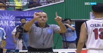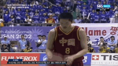 在第二节初的一次防守中,韩国球员持球突破姚明,在面对姚明的防守时,自己脚下踉跄,但是底线裁判马上判罚了阻挡犯规,姚明一头问号满脸蒙逼。