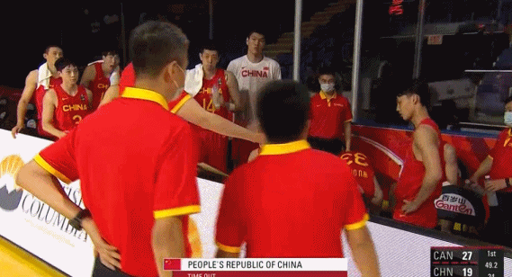 首节结束前49.2秒,中国队被加拿大打了一波12-2,以19-27被拉开分差。杜锋叫了暂停,先是对球员的表现不满:“没人逼你,你传什么?”接下来杜锋又鼓励球员们,安抚大家“别紧张。”首节结束,中国队以19-27落后于对手