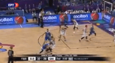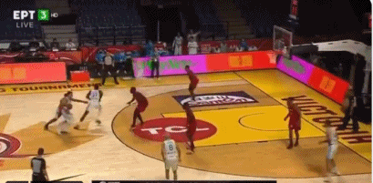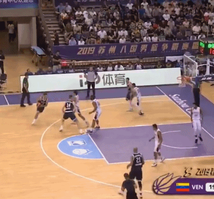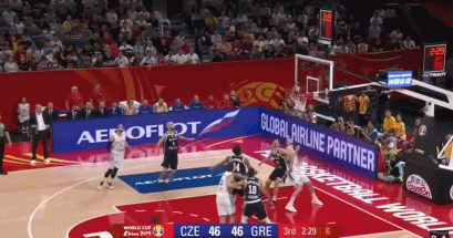 2019年世界杯热身赛,帕帕扬尼斯利用挡拆配合暴扣终结进攻