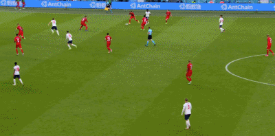 所以英格兰的破解之道也不难想,那就是送地面直塞,而且越远越好。于是凯恩开始拉边、回撤,再度变身热刺那个半中锋半前腰。萨卡送出直传,凯恩在中卫补防到来前抢先横传,中间抢点的是斯特林。嗯,不愧是你斯特林。