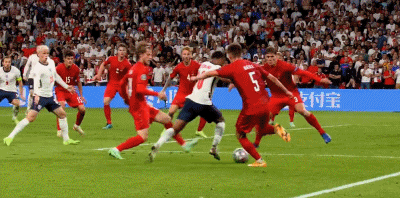 不知道是因为回家的呼声太高,还是索斯盖特想提前适应意大利本届杯赛的风格,可能也有丹麦队这套343讲究高位逼抢、重剑无锋的原因,这场较量一开场就挂到了五档。