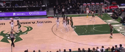但在保罗利用挡拆连中两个中投后,雄鹿就忍不住了,大洛开始上线夹击,字母哥开始换防,然后出现了这样的画面——