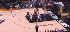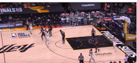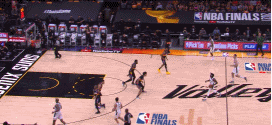 上面这个回合艾顿从底角切过来抢到了篮板。西部决赛面对快船的小个阵容,他经常站在底角。即便对于最顶级的内线来说,这个任务也不容易(问问戈贝尔就知道了。)