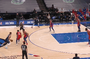在篮下终结时,康宁汉姆的强大的身体力量和平衡能力让他能在对抗后的不变形出手,另外,和东契奇一样,康宁汉姆也不是爆发力见长的球员,他很少能用速度生吃对手,但是他非常擅长在突破路线中通过变速寻找出手空间。