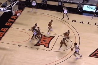 在这个回合中,康宁汉姆首先观察到对手上线夹击之后的防守漏洞进行突破,在用速度抹进篮底之后,身体原本面对球场底线的康宁汉姆早已观察到另一个角度的队友空切而来,在对手以为防守即将成功时一记横传洞穿防线,这球也完美展示了凯德的运控能力和传球能力,这种能力对于现代NBA的进攻核心来说也越来越重要。