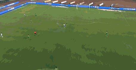 第34分钟,天津打破僵局,卡达尔直传,马格诺左路带球内切,倒三角回做到禁区线附近,周通停球闪过池忠国,右脚大力抽射球门远角得手,1比0。