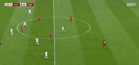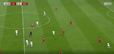 比赛的第13分钟,利物浦后场长传,南野拓实高速插上,他用一个非常漂亮的停球将球卸下,获得了单刀。不过,他的射门被门将给扑了出来,利物浦错失得分良机。