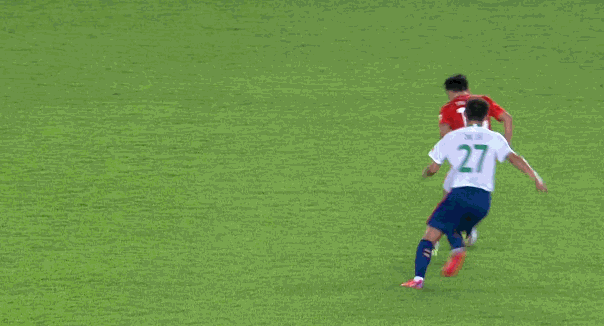 第63分钟,朱建荣中场边路从背后铲倒严鼎皓,主裁判张晓晨出示黄牌。不过从慢动作来看,朱建荣动作较大,张晓晨也算是手下留情。