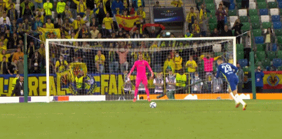 点球大战第一轮,切尔西哈弗茨射丢,比利亚雷亚尔莫雷诺骗过凯帕命中,总比分切尔西1-2。