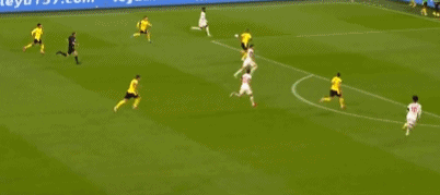 第62分钟,贝林厄姆禁区外右脚远射,诺伊尔将球扑住。第64分钟,贝林厄姆禁区内倒三角回传,罗伊斯禁区外右脚重炮攻门,皮球擦着右侧门柱飞入球门,诺伊尔扑救不及,1-2!