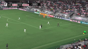 60分钟时,伊瓜因送出助攻,迈阿密国际2-2扳平比分。在接到队友长传后,伊瓜因前场右侧底线附近横扫门前,罗比-罗宾逊面对门将右脚弹射破门。