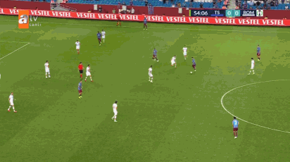 这种进攻纵深上不对称的站位,势必会带来中路推进上的“单薄”,也意味着罗马的进攻体系会在最大限度上向边路推进。此番对阵特拉布宗体育,罗马的中路进攻比重只有19%。