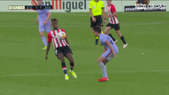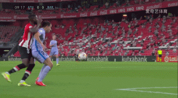 第10分钟时,埃里克-加西亚第一次出丑。毕巴将球送到巴萨禁区内,埃里克-加西亚试图用身体卡住位置,让内托出击拿球。但埃里克-加西亚力量不足且身体覆盖面积小,伊尼亚基-威廉姆斯从他身后伸出腿来偷袭。若非内托下意识将球扑出,巴萨早早就要丢球了。