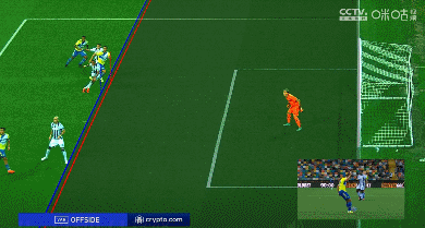 第94分钟,基耶萨在禁区前偏右侧的45度传中,C罗禁区内左侧头球攻门得分,但是主裁被VAR裁判提醒后认为C罗越位在先,进球无效。